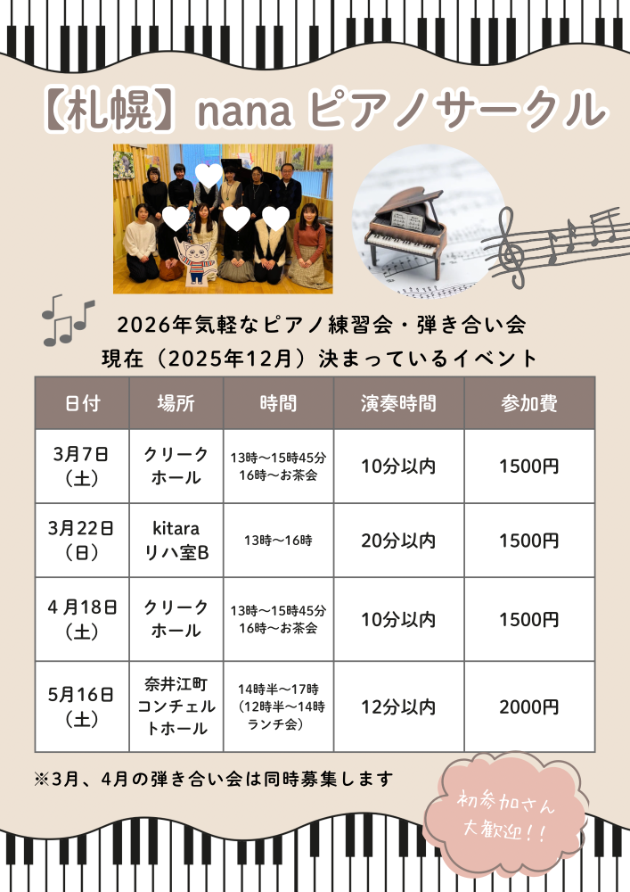 さて、来年のnanaピアノサークルの予定を一足先にご連絡いたします!